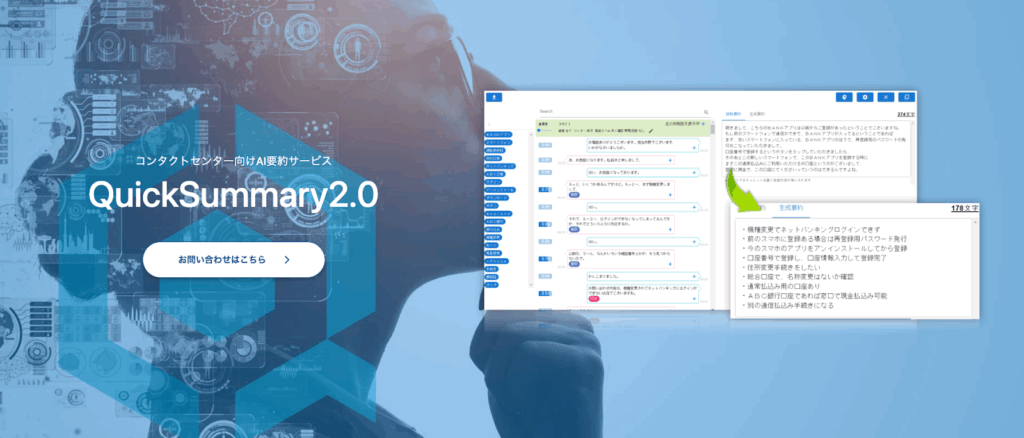 VoiceSummarizeという独自AIの機能で、お客様とオペレーターの通話内容を自動で要約してくれるシステムが最大の特徴になります。