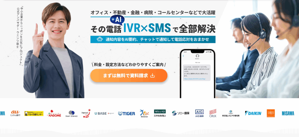 | 機能 | ・音声自動応答システムによる自動振り分け ・発信、着信管理、通話録音、履歴管理 |