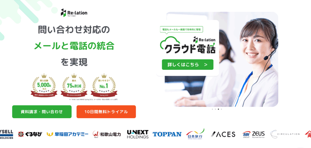 Re:lationは、複数人でのメール・問い合わせ対応を効率化するクラウド型の共有管理ツールです。