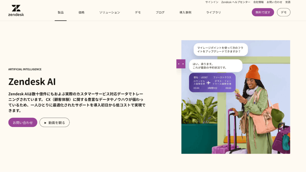 Zendesk AIは、問い合わせ管理をはじめFAQ、CTI、チャットボットなどの機能を包括的に備えたシステムです。