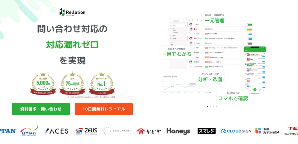 Re:lationは、メールやチャット、SNS、電話など複数の問い合わせチャネルを一元管理し、カスタマーサポート業務の効率化が期待できるツールです。