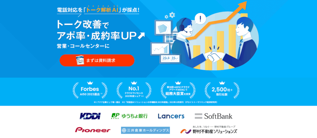 | 機能 | ・通話内容を自動で文字起こし ・感情認識システムの搭載 |