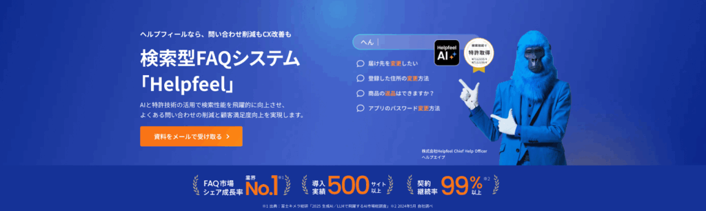 Helpfeel(ヘルプフィール) は、独自の検索技術を活用し、顧客の自己解決を促進するFAQシステムです。