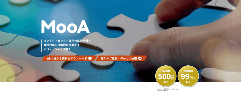 MooA(ムーア) は、AIを活用した音声認識・解析ソリューションで、コールセンターやカスタマーサポート業務の効率化を支援するシステムです。
